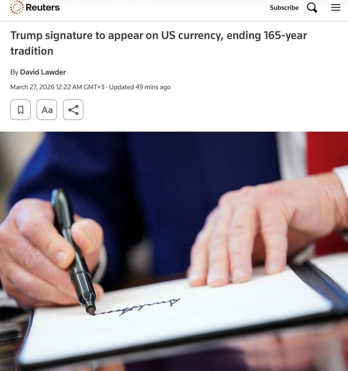 Впервые в истории на долларах США появится подпись действующего президента